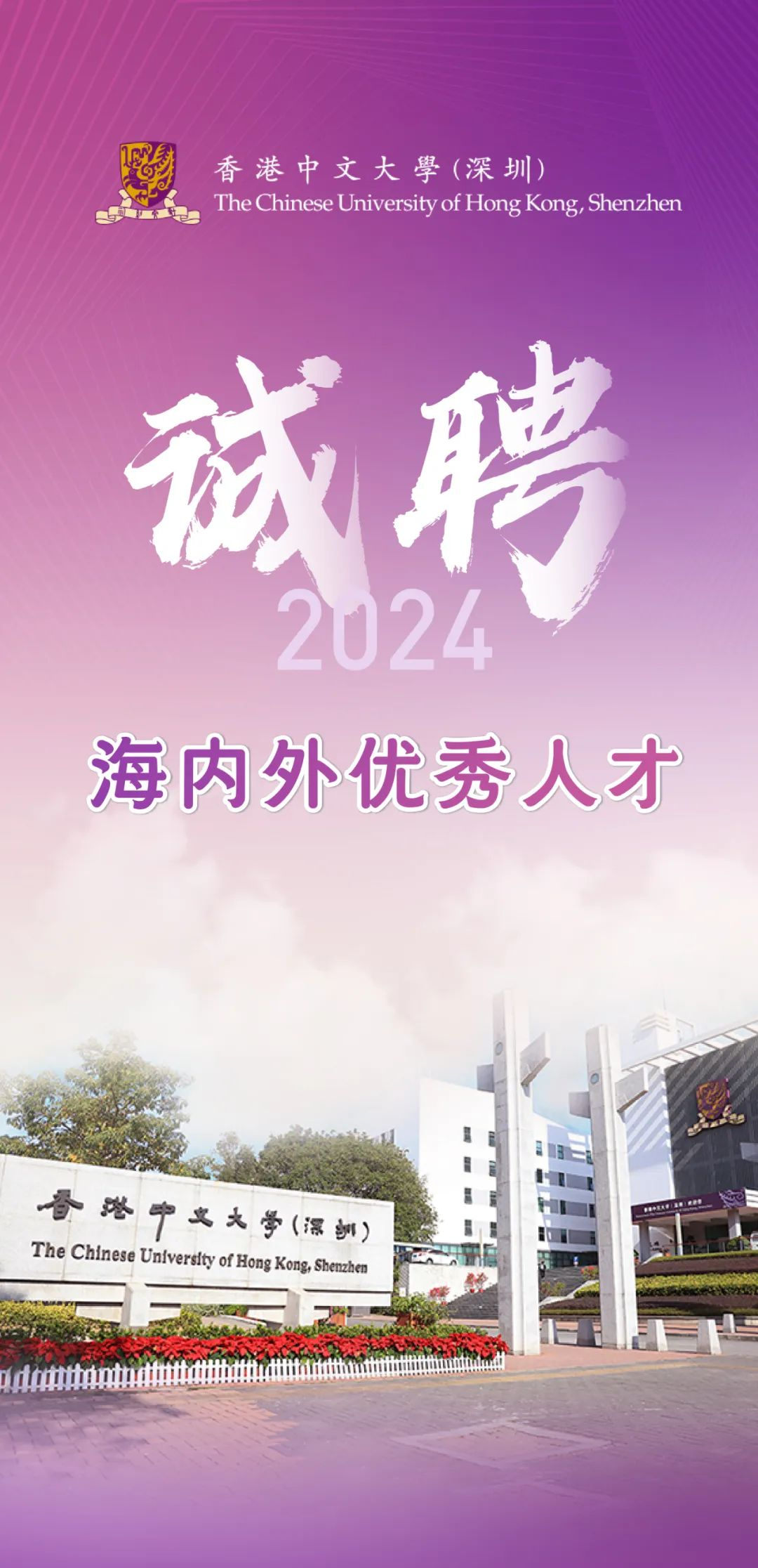 The application of talent recruitment for 2024 will start soon. We warmly welcome top talents worldwide who are eligible for programs to join CUHK-Shenzhen!