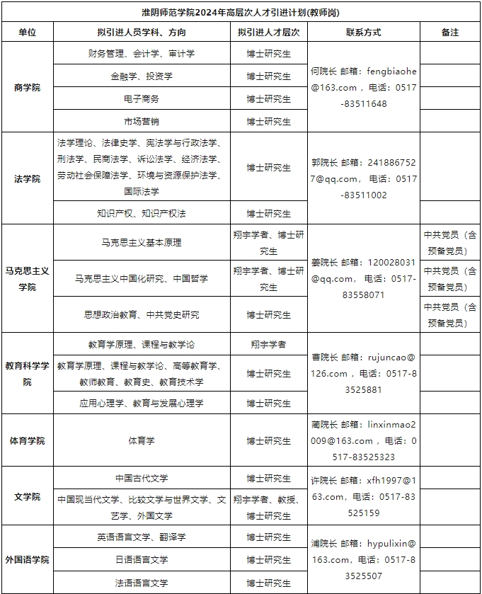 淮阴师范学院2024年诚聘高层次人才