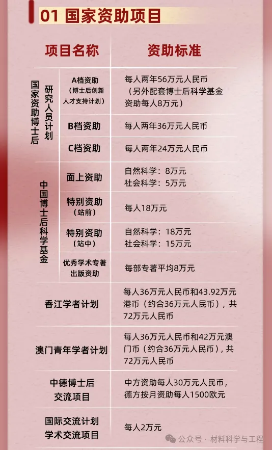 (4)鼓励博士后申报国家、省、市等各级各类资助项目(详见下表),所获得的资助补贴不计入总薪酬,叠加发放。具体信息见【才来苏大大可为!苏州大学面向全球诚聘全职博士后】