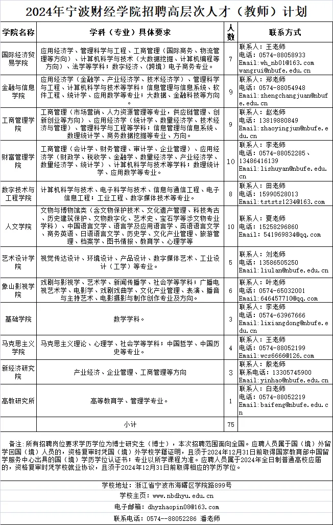 详见《2024年宁波财经学院招聘高层次人才(教师)计划》(见附件1)