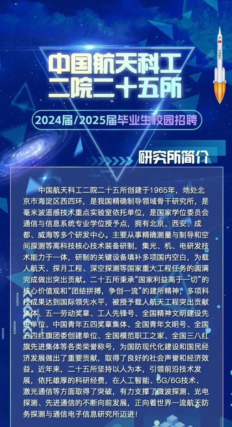 【招聘】硕士35万,博士45万/年!待遇优厚!中国航天科工二院二十五所招聘材料类毕业生!