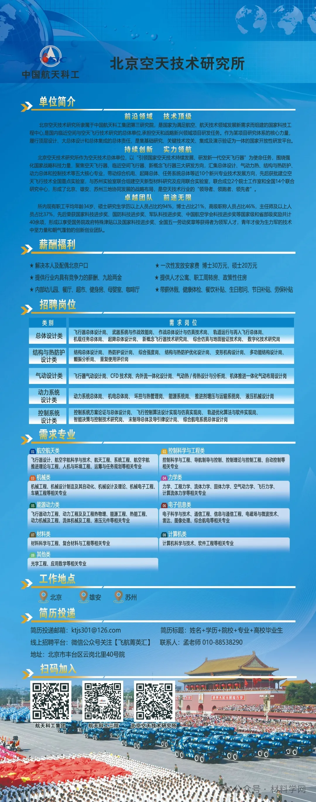 【招聘】 待遇优厚!航天三院301所(北京空天技术研究所)2024届补招材料毕业生!