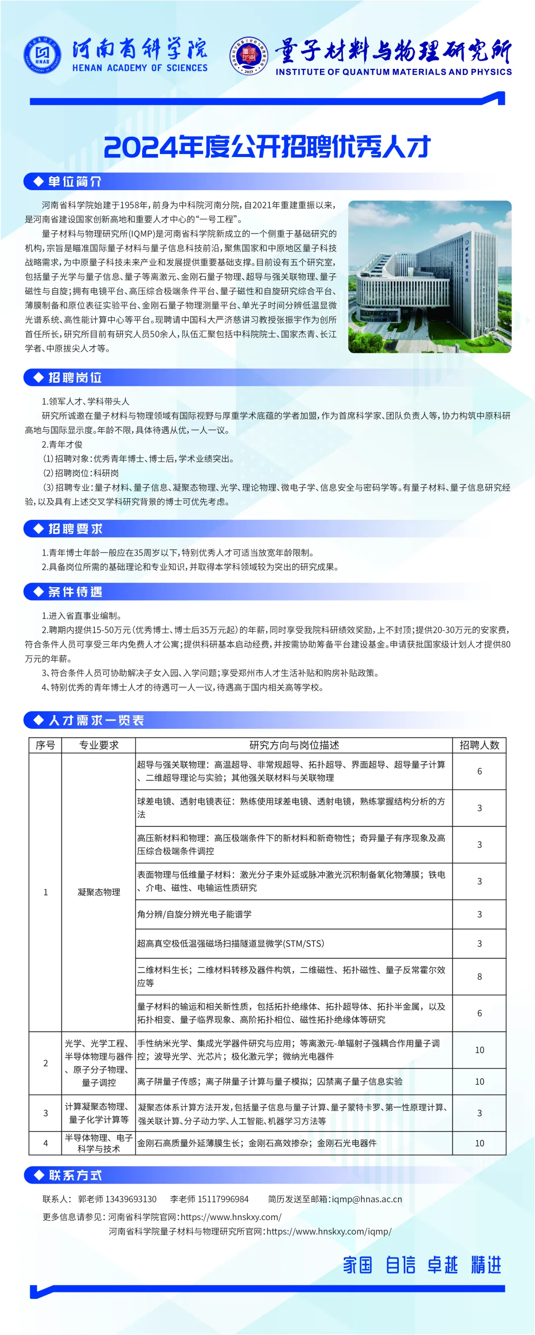 【招聘】年薪高达50万! 河南省科学院量子材料与物理研究所2024招聘材料类毕业生!