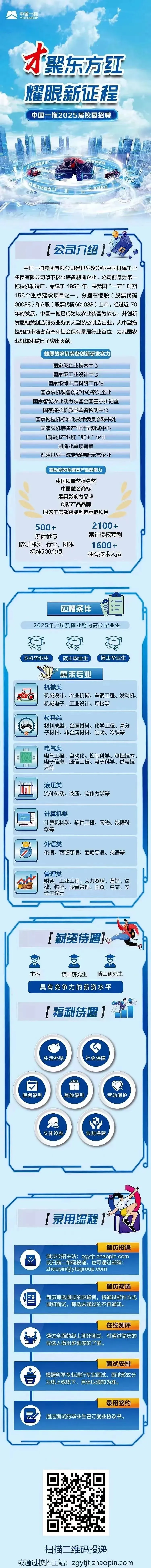 招聘:待遇优厚!中国一拖2025届校园招聘材料毕业生