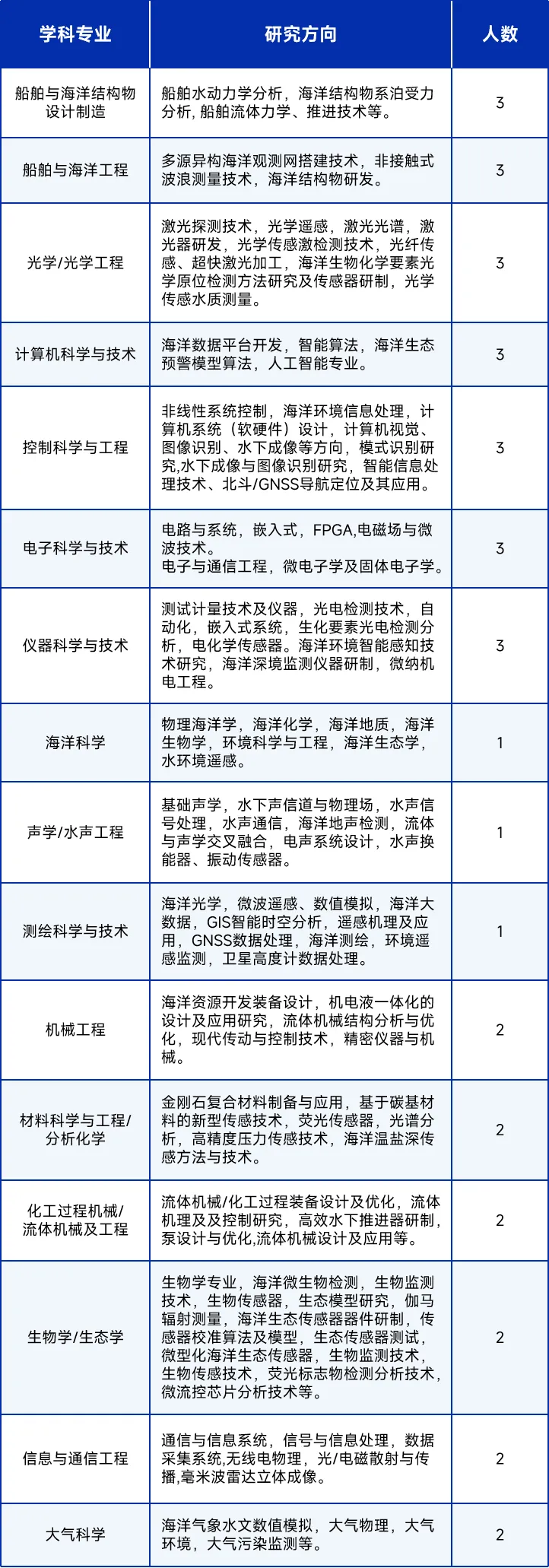 实验室简介 实验室坐落于黄海之滨青岛,依托山东省科学院海洋仪器仪表研究所和中国海洋大学共同组建。实验室作为国家战略科技力量的重要组成部分,聚焦海洋动力-物理环境保障及智能感知技术的应用基础研究,构建海洋动力和物理环境感知、认知和预知体系新范式,打造国际一流的海洋科技前沿研究中心和高水平创新人才培养基地。实验室拥有院士2人、国家级人才33人、省部级人才14人,以高水平科学家为核心形成了海洋特色鲜明的多学科交叉综合集成研究群体。 招聘岗位及基本条件 (一) 海内外高层次人才 1.申请条件 第一层次 学术水平具有国际影响力,能够聚焦国家战略需要,引导开拓新的国际前沿领域研究方向,入选海内外权威学术机构院士或具备相当水平的人才。 第二层次 在学术前沿领域取得国际同行公认的高水平原创性研究成果,或在国家战略需求领域取得重要成果攻克卡脖子技术,能够深度融入国家和全省科技创新战略布局,具有带领本学科领域赶超国际先进水平的能力。年龄原则上应在55岁以下,学科急需或科研业绩特别突出的,可适当放宽年龄限制。 第三层次 在国家重大需求和学术前沿领域取得重要的标志性成果,能够聚焦高水平大学建设和服务区域经济社会发展需要,带领本学科领域开展高水平研究。年龄原则上应在40岁左右,学科急需或科研业绩特别突出的,可适当放宽年龄限制。 2.支持政策 ◆ 年薪制。 ◆ 购房补贴。 ◆ 根据工作需求提供必要的办公和科研条件,优先支持申报内部教学科研项目。 ◆ 第一层次人才一事一议。 (二) 优秀青年博士 1.岗位需求 2.支持政策 ◆ 山东省属事业编制。 ◆ 准聘期内享受副高级专业技术职务待遇。 ◆ 提供购房补贴并协助申领青岛市住房补贴及一次性安家费。 ◆ 支持符合条件的优秀博士依托研究所申报“直接给予”山东省青年科学基金项目(C类)、山东省泰山学者工程等各级各类研究计划及人才工程。 ◆ 可申请研究所“海仪英才托举计划”、培养基金等人才培养计划。 联系方式 电话:0532-58628529 邮箱:rs@sdioi.com 联系人:赵老师