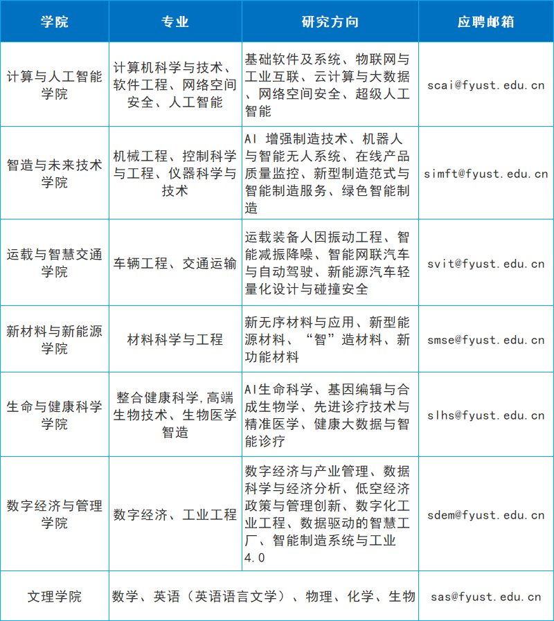 • 邮箱:talents@fyust.edu.cn