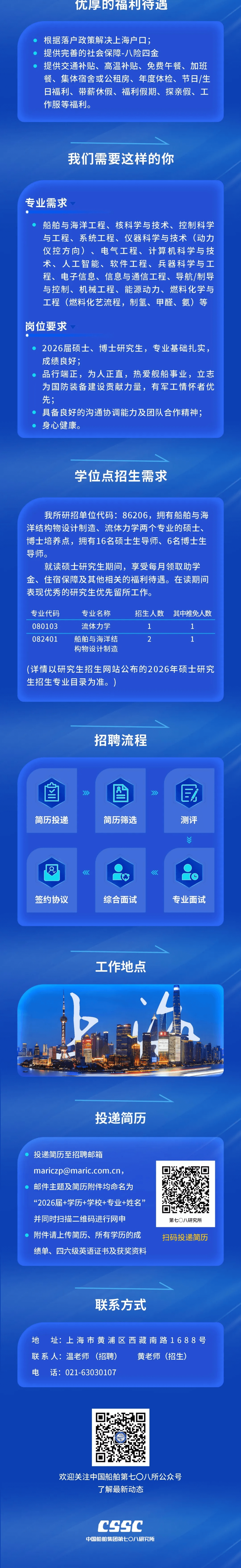 招聘丨八险四金,上海!中船集团第七〇八研究所2026届校园招聘材料毕业生