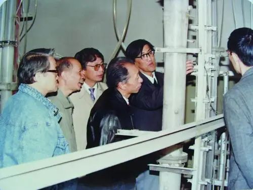 1995年,李洪钟(左五)在临界移动床输送成果鉴定会现场做讲解。