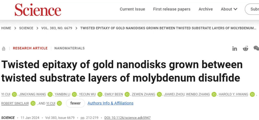 崔屹,美国国家科学院院士,斯坦福大学终身教授、博士生导师、纳米材料科学家。1998年获得中国科学技术大学理学学士学位;2002年在哈佛大学获得博士学位;2003年在加州大学伯克利分校从事博士后研究;2004年入选世界顶尖100名青年发明家;2005年进入斯坦福大学任教,先后担任助理教授、副教授、教授;2014年获得首届纳米能源奖;2017年获得布拉瓦尼克青年科学大奖之物质科学与工程技术奖;2020年当选美国科学促进会会士。其主要研究方向为纳米材料在能量存储、光伏器件、拓扑绝缘体、生物及环境等方向的应用。崔屹教授在他的2024年终总结中写道,“我近30年科研生涯的最大体会:科研的最高境界是“无招胜有招”,是我读金庸武侠小说和做科研的融合,我斯坦福实验室的科研成果一直在这个指导思想下进行,现在把2024的10大科技进展和大家汇报, 有多项惊喜发现和发明。”1) 发现材料科学新现象,twisted epitaxy (扭曲外延),对材料科学有foundational的影响,由博士生 Yi Cui(崔一)领衔,论文在Science上发表;2) 发现软模版液晶相可以让锌和二氧化锰电化学沉积变得更可控和更可逆,库伦效率很高,实现了水基电池的重大突破,由博士后Yuqi Li领衔, 论文在Nature Energy上发表;3) 发现金属锂电池在放电态进行休息,可以恢复容量,发现其中机理,对电池寿命的大大增加提供解决方案, 由博士生Wenbo Zhang领衔,论文在Nature上发表;4) 发现交流电泳现象可以用来恢复硅负极的容量,让高能量密度硅负极电池寿命大大延长,由博士生Yufei Yang领衔, 论文在Science上发表;5) 冷冻电镜材料领域的又一大突破:我们在外加电压的条件下,把有电活性的催化剂快速冷冻,发现惊讶的亚稳定态,该方法对材料及生物领域都会产生深远的影响,由博士生Yanbin Li领衔,论文在Nano Letters上发表;6) 发明多孔集流体技术把锂电池充电速度提高4倍,由博士后Yusheng Ye领衔,论文在Nature Energy上发表;7) 高能量密度金属锂电池界面SEI膜形成的机理解析,对寿命和安全性有大的影响,由博士后Weilai Yu领衔,和鲍哲南老师共同指导完成,论文在Nature Chemistry上发表,Weilai即将在多伦多大学开始做教授;8) 利用HER和HOR实现高能量效率低成本的海水碱化 ,用于二氧化碳捕捉,对气候变化做贡献, 由博士后Xun Guan领衔,论文在PNAS上发表;9) 不需要外在能量,反而产生电能进行卤水锂元素提纯,巧妙利用了阴离子浓度差提供免费的能量,由博士后Ge Zhang领衔, 论文在Nature Water上发表;10) 利用HER和HOR, 固态电解质的锂离子选择性,实现高能量效率低成本在卤水里进行锂元素提纯,由博士后Rong Xu领衔,论文在Matter上发表。