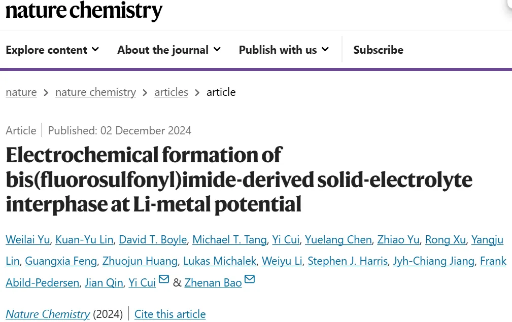 Electrochemical formation of bis(fluorosulfonyl)imide-derived solid-electrolyte interphase at Li-metal potential. Nature Chemistry (2024). https://doi.org/10.1038/s41557-024-01689-5