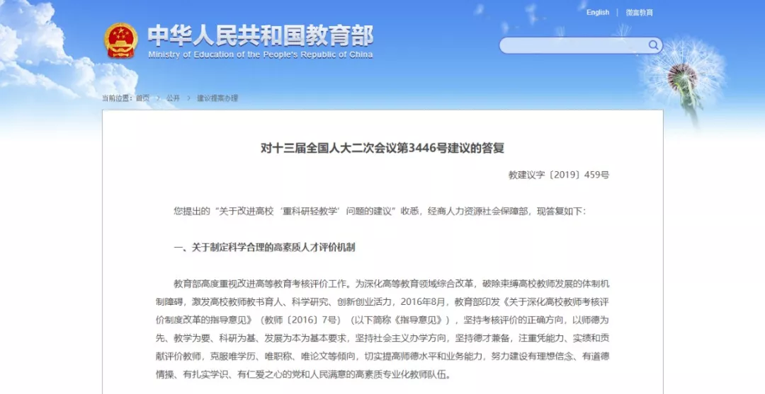 教育部回复!如何破解高校“重科研轻教学”?
