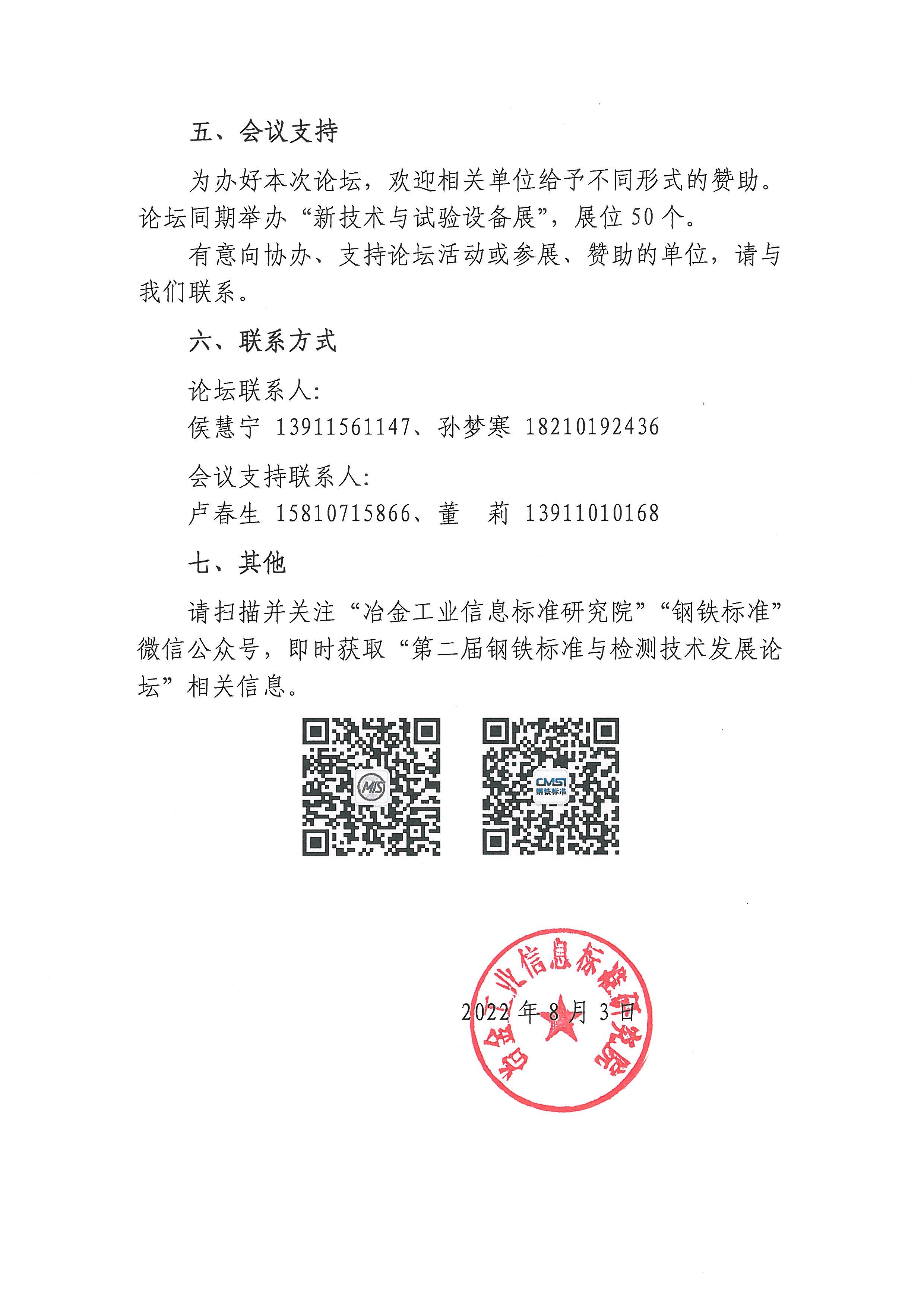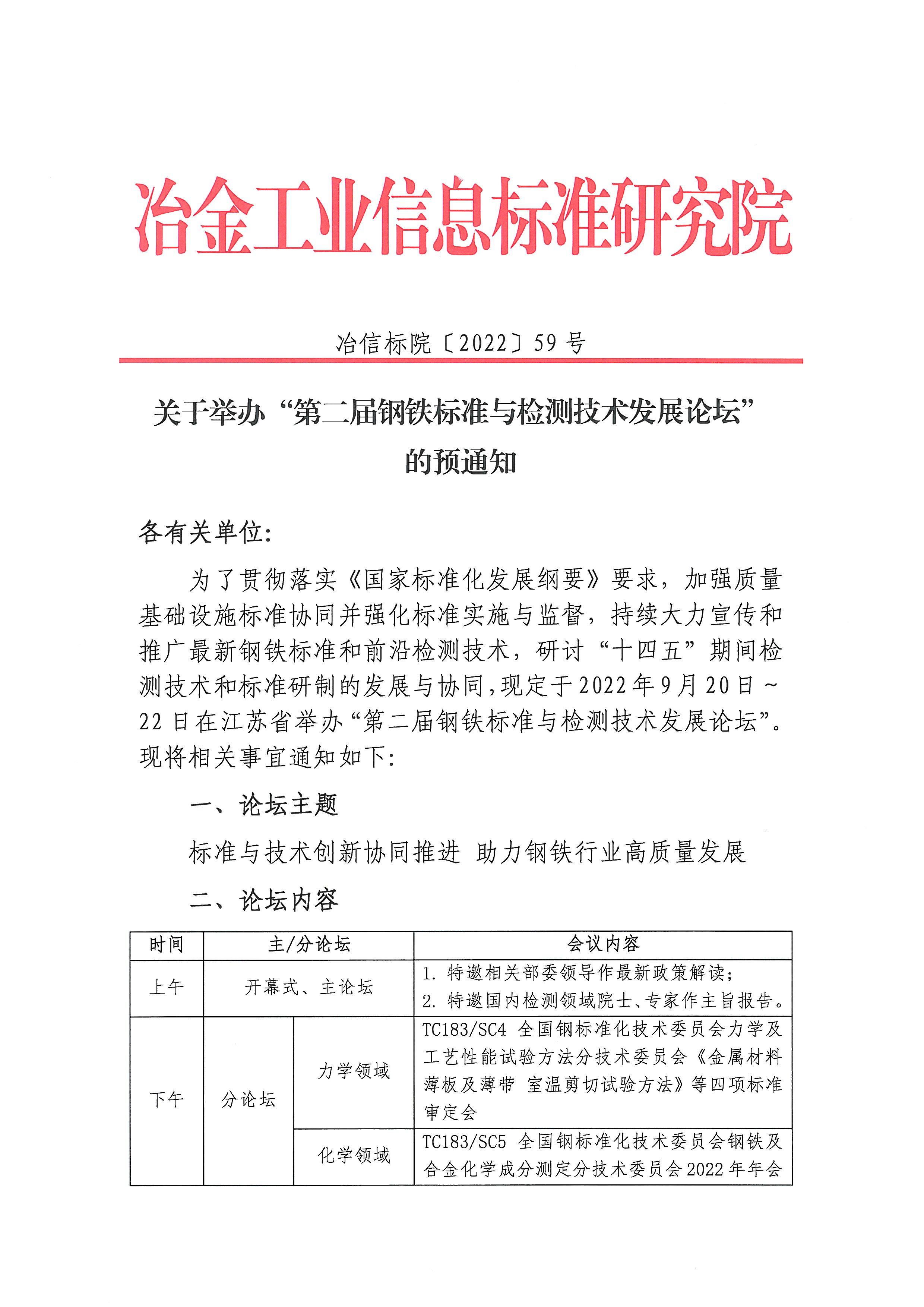 标签: 第二届钢铁标准与检测技术发展论坛, 通知