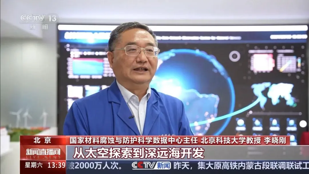 2024年10月5日,央视新闻频道《新闻直播间》栏目播出《追梦七十五载》节目。节目报道了新中国成立75年来,“从全民扫盲到教育强国,夯实国家富强之基”的伟大历程,带领我们一同探寻了新中国从人口红利到人才红利的发展之路。 国家材料腐蚀与防护科学数据中心主任、北京科技大学新材料技术研究院教授李晓刚代表团队接受央视记者采访。