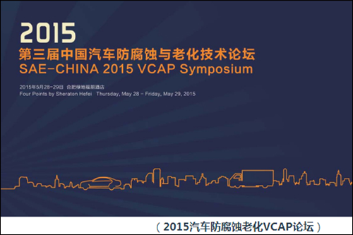 2015第三届中国汽车防腐蚀与老化技术论坛SAE-ChinaVCAPSymposium2015第三届中国汽车防腐蚀与老化技术论坛(VCAP论坛)将于5月28-29日在安徽合肥