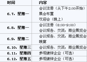 此次大会将提供德语、意大利语、西班牙语、法语、汉语、日语的同声传译。会议期间针对代表们所关心的热点议题还将在展厅设置小型研讨会,便于代表更深入地分享经验、探讨问题。同时,此次的商业展览会是热浸镀行业史上最大的一次展览,为镀锌行业人士广泛交流提供平台。此外,会后两天还将安排与会代表参观英国批量热镀锌企业,促进同行进行技术交流,还为随同人员安排观光旅游等活动。