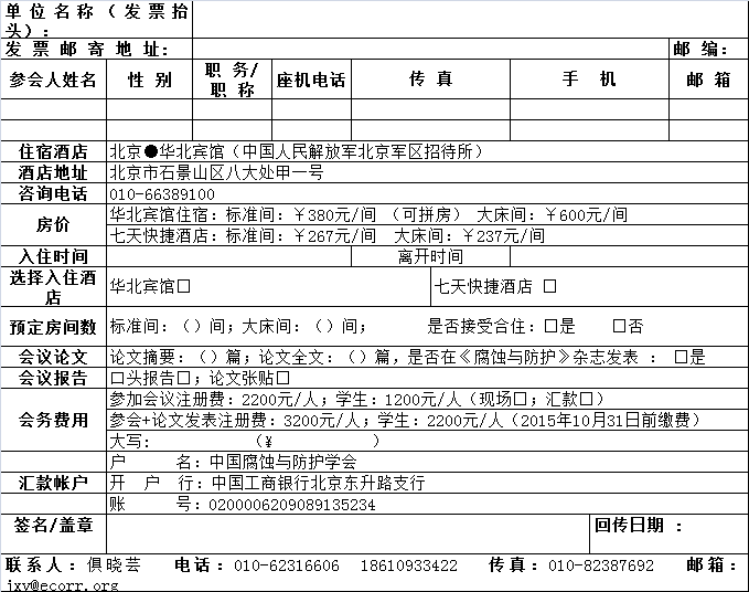 会议联系人:俱晓芸/010-62316606/18610933422 邮 箱:jxy@ecorr.org