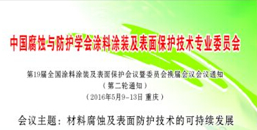 第19届全国涂料涂装及表面保护会议暨委员会换届会议会议通知(第二轮通知)(2016年5月9-13日 重庆) 会议主题:材料腐蚀及表面防护技术的可持续发展 主办单位 中国腐蚀与防护学会涂[详细]