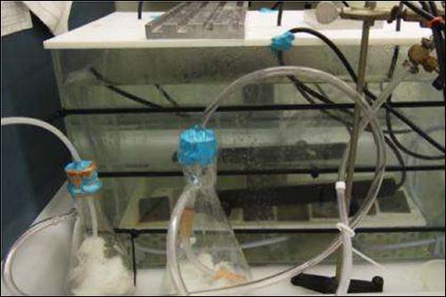 腐蚀加速实验,将零件至于装满海水的加热容器中。