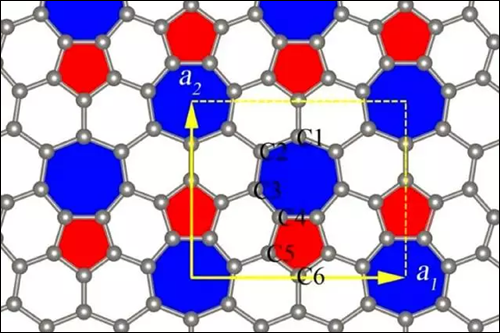 “与石墨烯的六角形蜂窝状结构不同,phagraphene由五边形,六边形及七边形碳环组成。它的名字来自五角六聚石墨烯的集合,”MIPT的电脑设计实验室负责人Oganov。