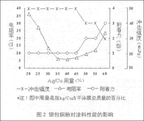2.3、银包铜用量对涂料性能的影响