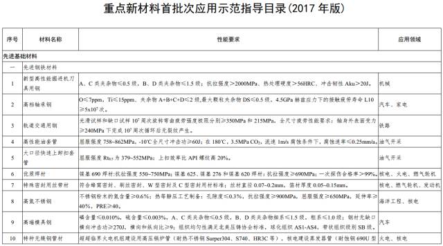 附件:重点新材料首批次应用示范指导目录(2017年版)