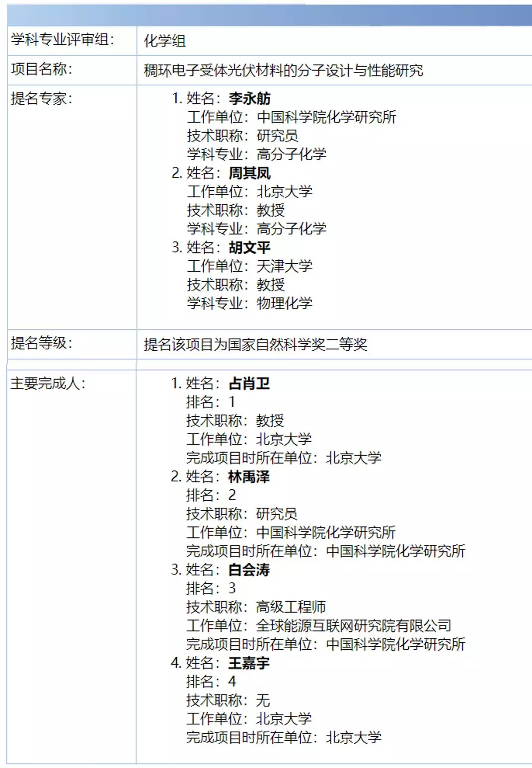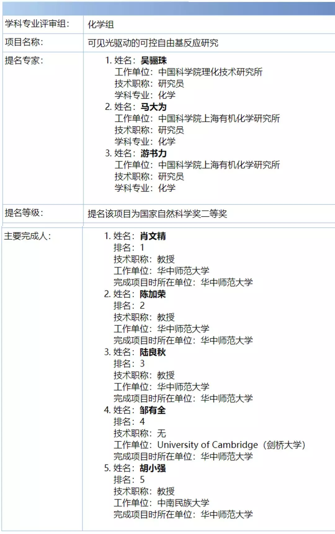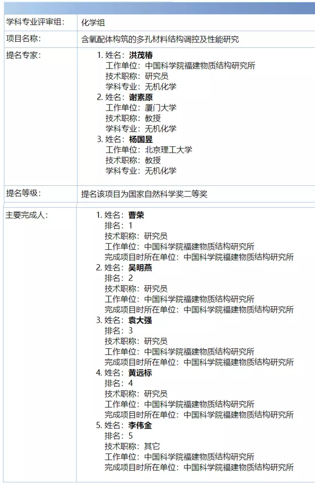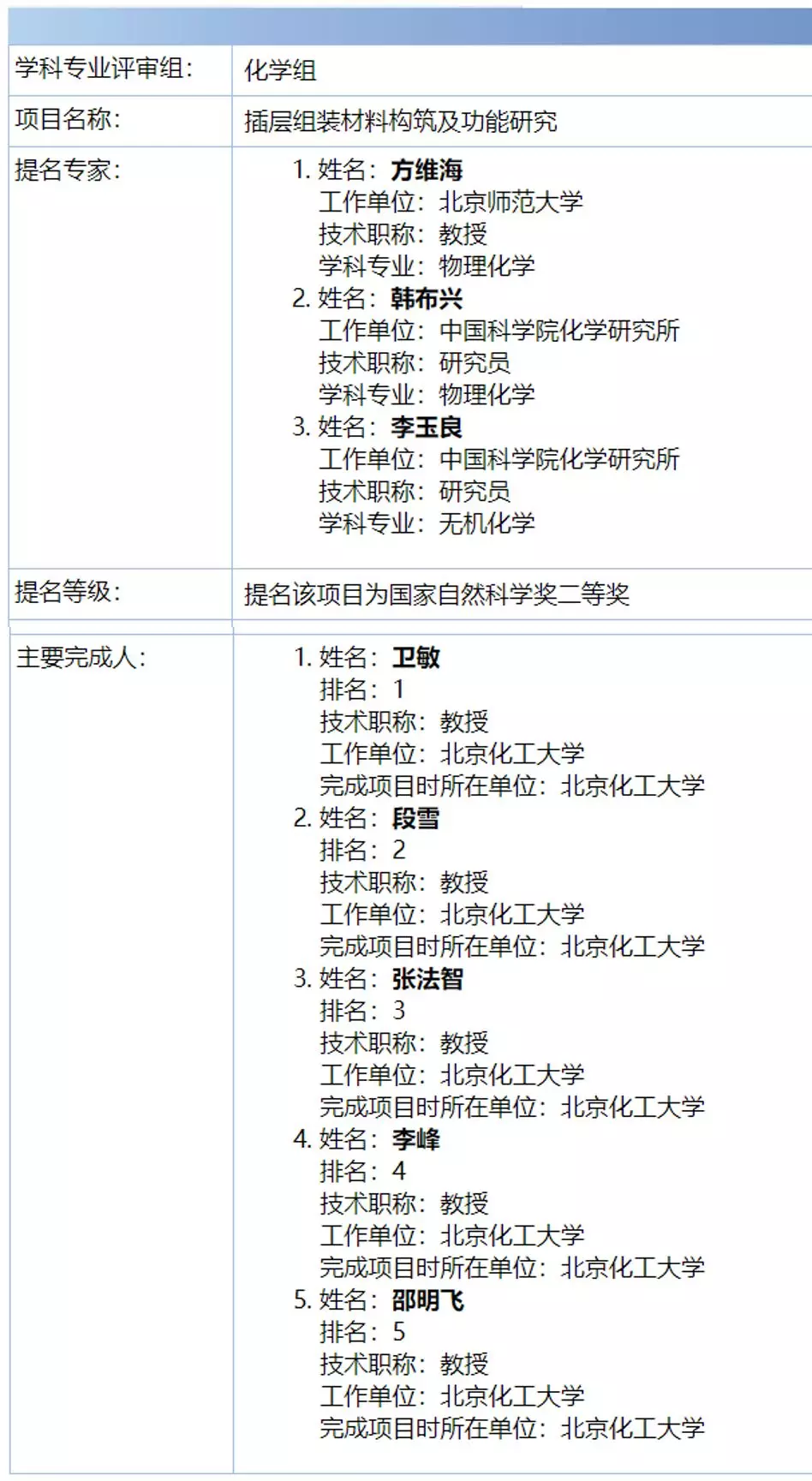 重磅丨2020年度国家科学技术奖励材料和化学组受理项目名单出炉!