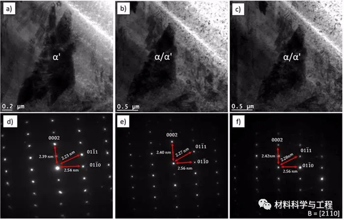 实验观察到当合金从25℃加热到400℃时发生晶格的应力松弛,而没有出现任何相变。高于400℃,α'(马氏体)→α+β(平衡)相变是逐步发生的。XRD和TEM结果均表明晶体结构发生了转变,而随着α'马氏体逐渐分解,α(平衡)和α'(马氏体)共存。