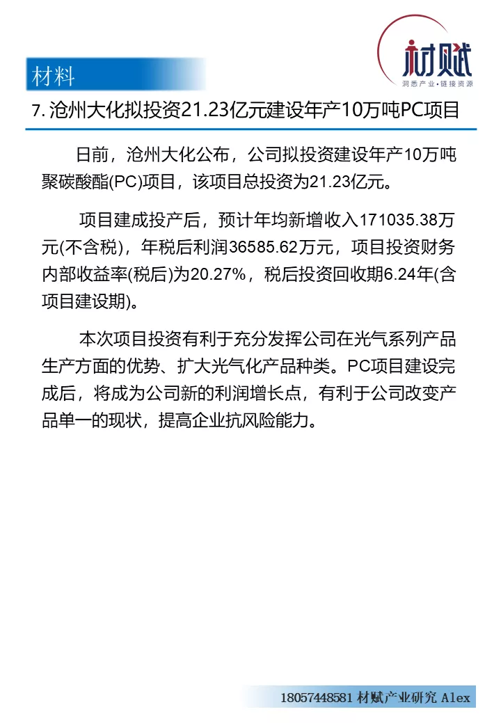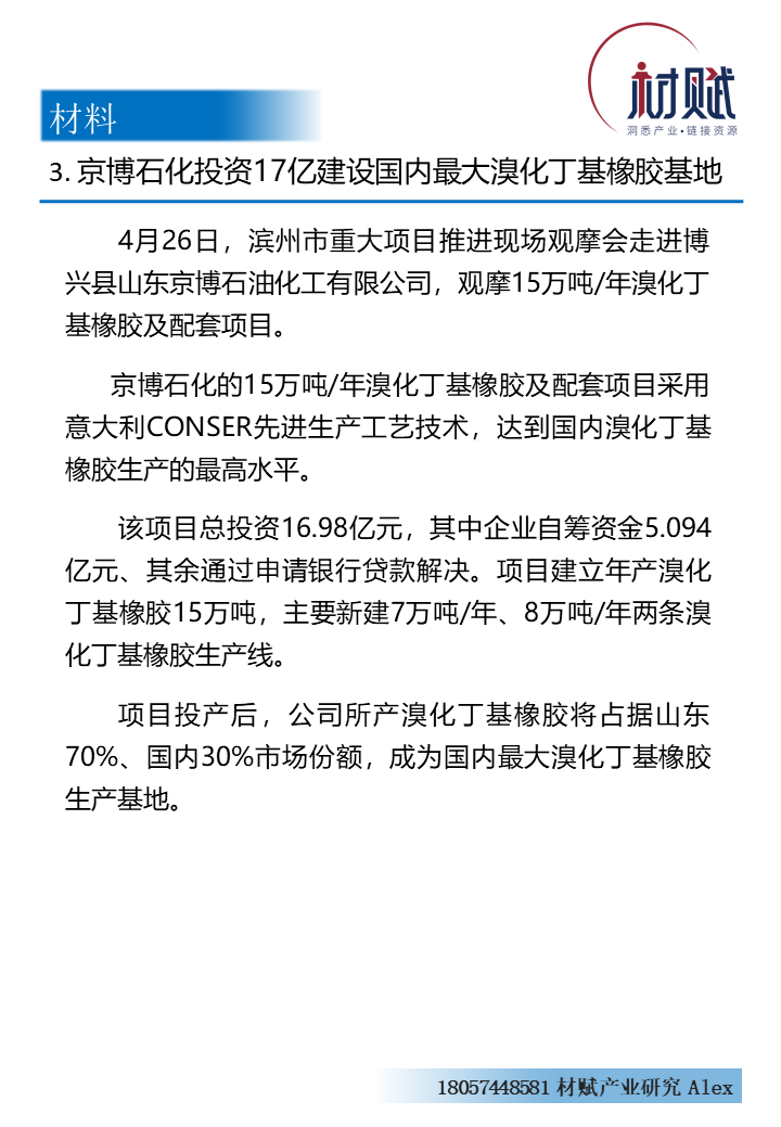 【4月20日-26日】100亿美元!又一外企重资布局中国市场;中国化学拟募资百亿加码尼龙新材料等项目