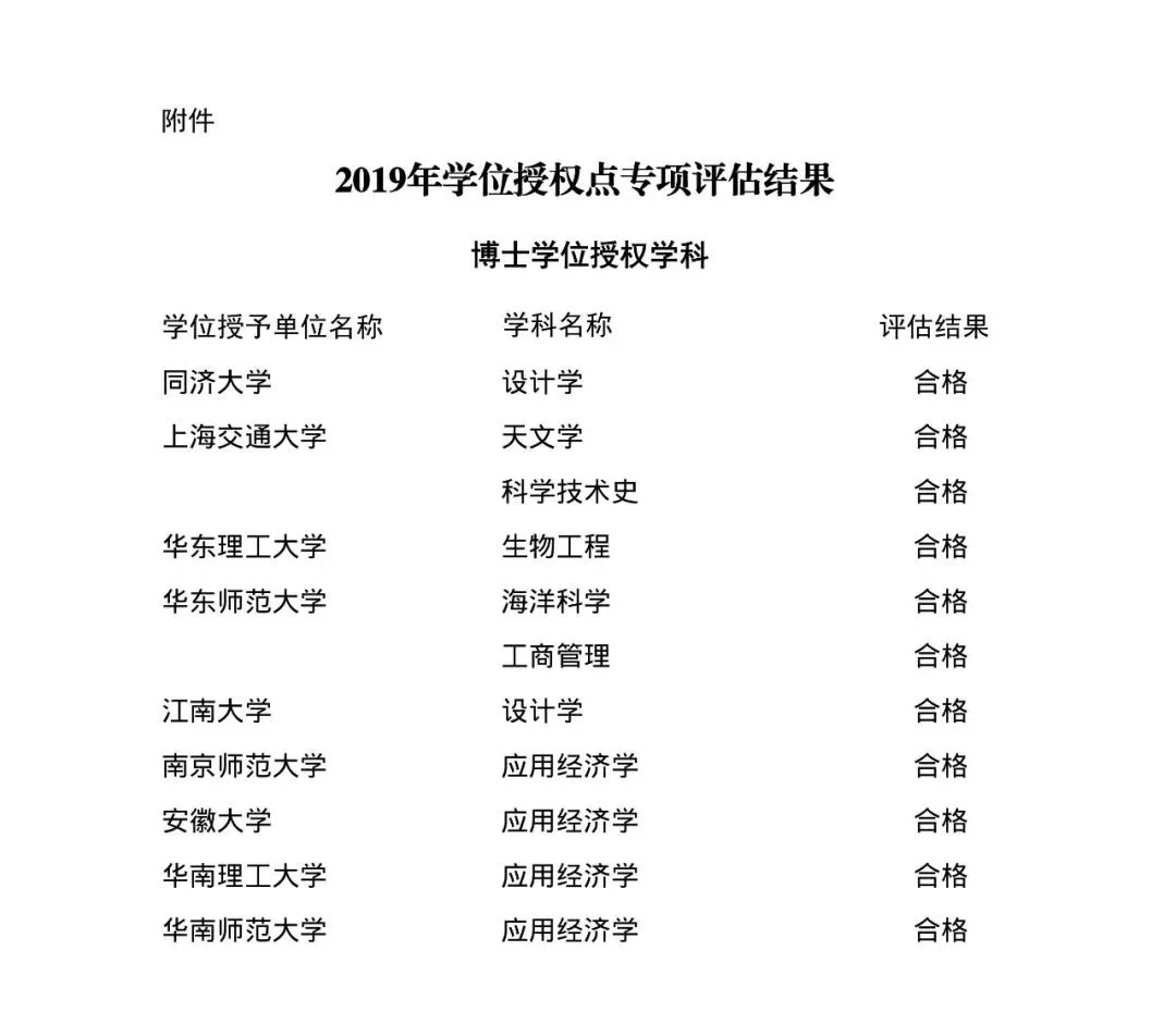 4月30日,教育部官网发布了《国务院学位委员会 教育部关于下达2019年学位授权点专项评估结果及处理意见的通知》。《通知》中下达了2019年学位授权点专项评估结果及处理意见。本次参评的64个学位授权点,评估结果均为“合格”,可继续行使学位授权。