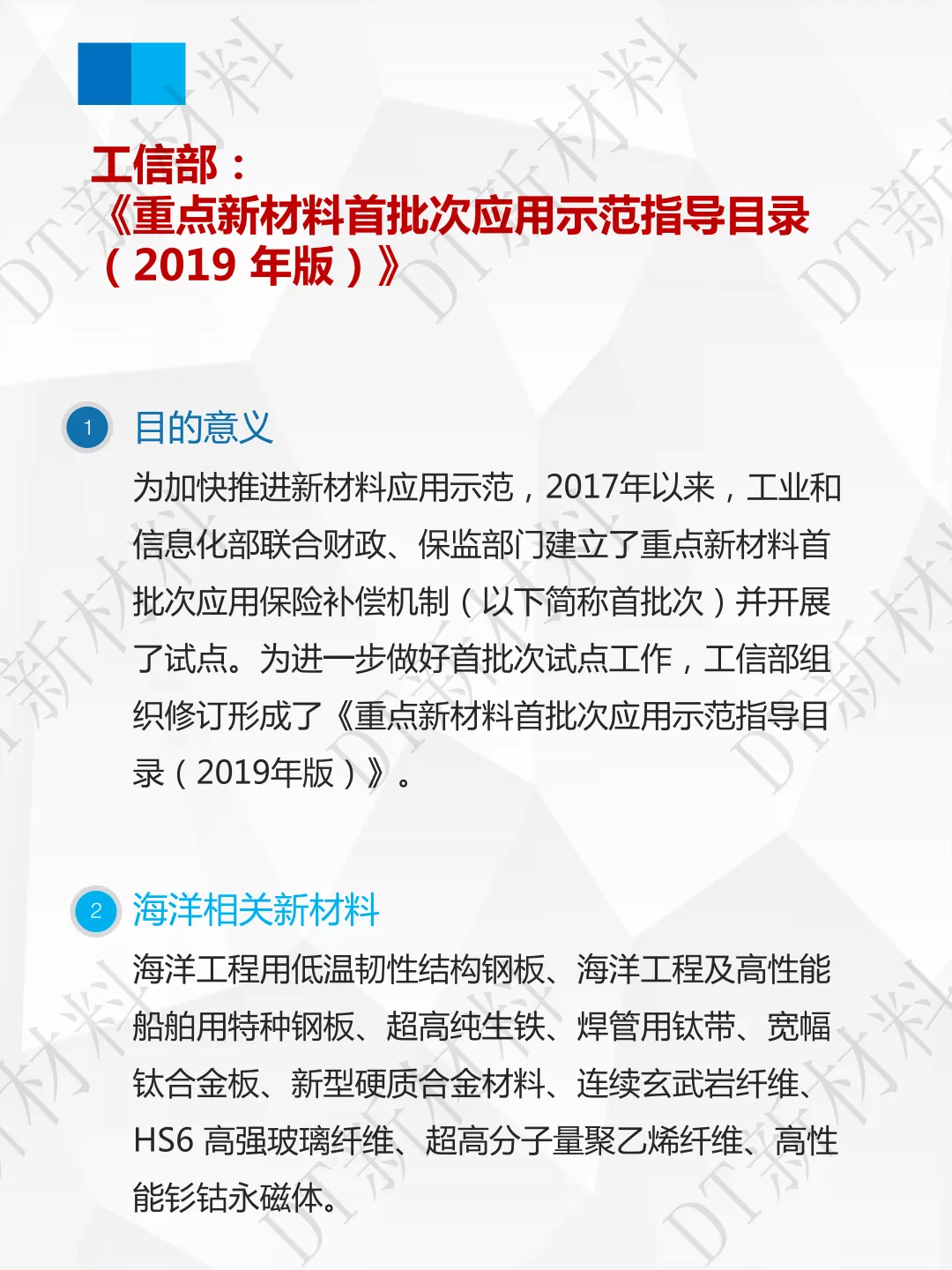 2014年以来,国家海洋局、科技部、工信部、发改委和自然资源部等相继出台了多项政策,内容涉及了海洋用钢、海洋用有色金属、海洋防护材料、混凝土以及复合材料等海洋工程关键材料的研发;深远海网箱、海洋钻进、大型和超大型船舶、深海钻探、海水淡化装置、海洋能源开发装备、极区装备、水下作业系统和检/监测设备等海工装备和配套系统的开发;海洋产业示范区、测试检验平台、海洋装备性能测试评估标准和海工装备产业发展模式创新等工作的推进。