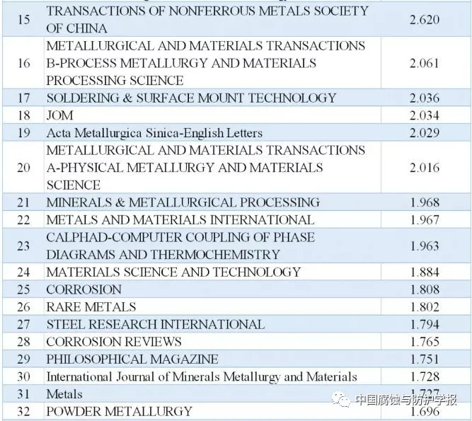 冶金学科主要期刊