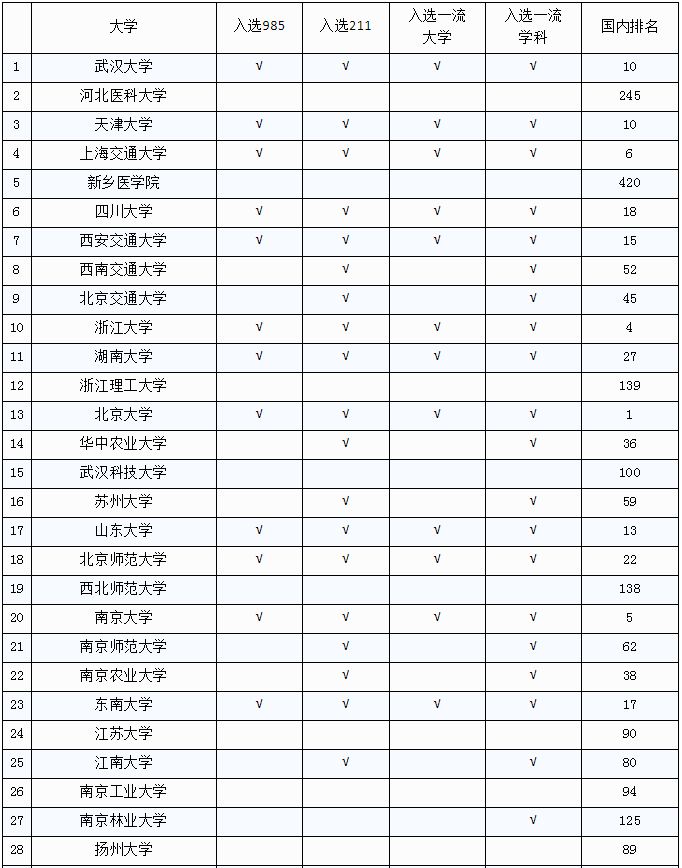 这28所百年大学中,有18所排名在101-200位,有10所排名在200位之后。其中,湖南第一师范学院、新乡医学院、长沙师范学院3所大学,排名更在400名之外。
