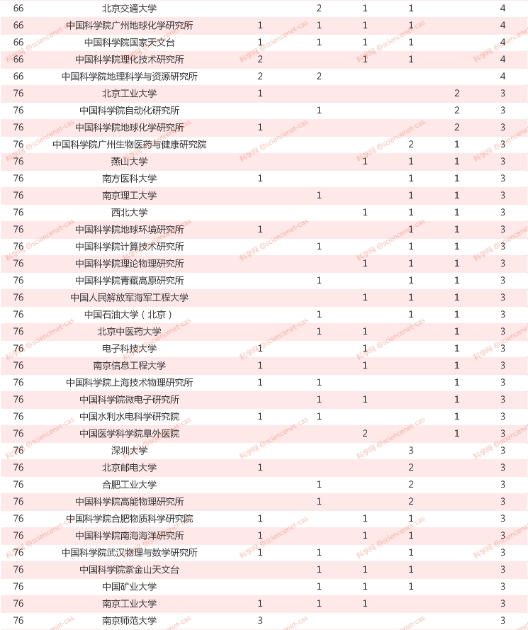紧随其后的是南京大学、上海交通大学、中科院上海生命科学研究院,分别是33人、32人和29人。华中科技大学和武汉大学也超过(含)20人。