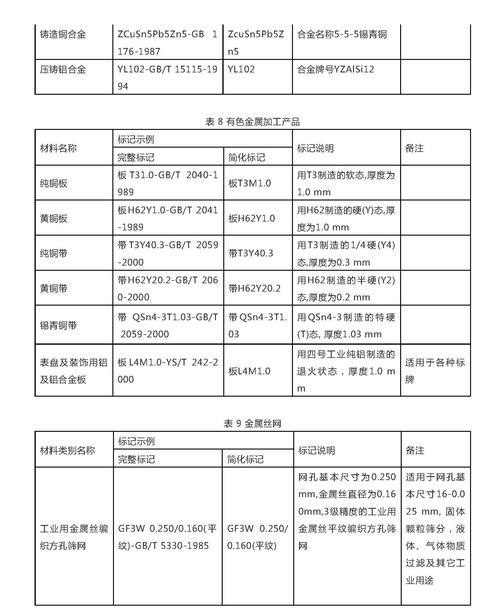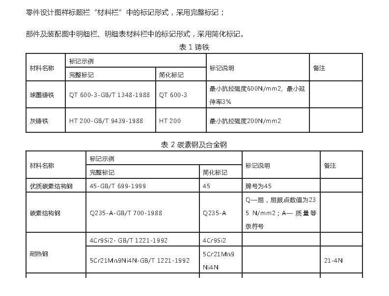 9个表:常用钢铁材料的标记牌号和常采用的形式