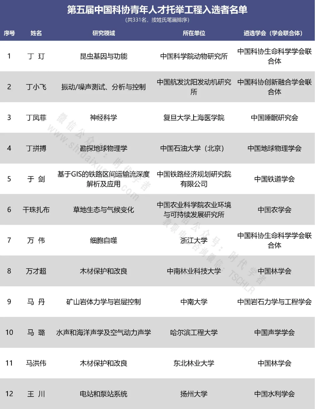 近日,中国科协办公厅公布了第五届中国科协青年人才托举工程入选者名单,最终331人入选(不包含特殊科技领域人选)。