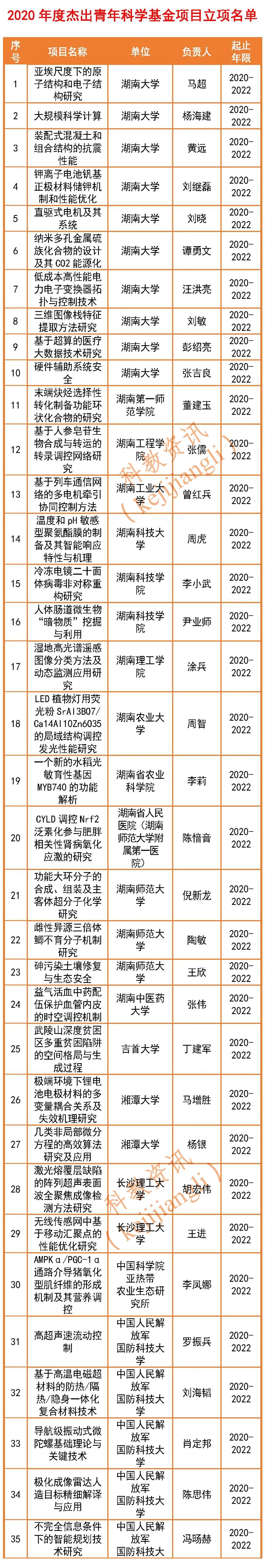 截止到2020.9.24日,国家杰青已经公布拟资助300项名单、国家优青资助625项,尚未公布具体名单;省级杰青已公布354项,省级优青已公布485项人,具体名单如下: