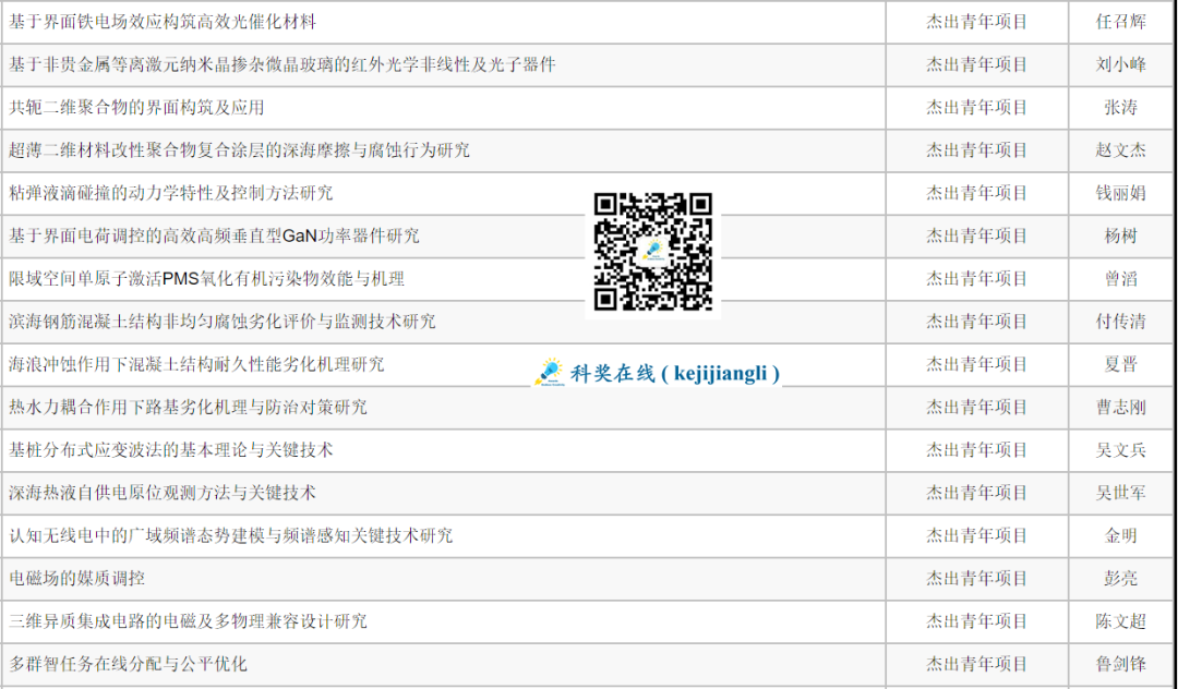 2020年度已公布的全国杰青优青名单