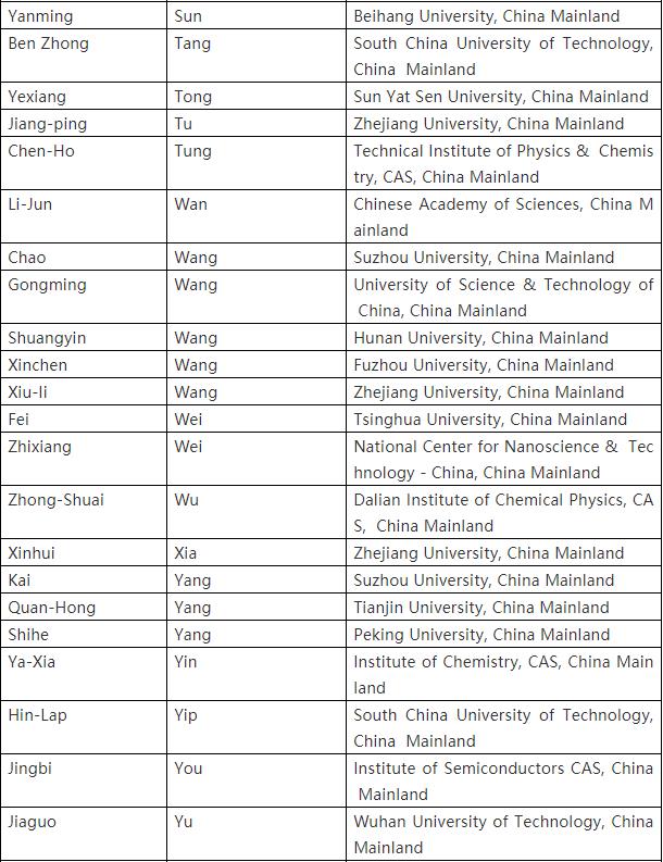 其中材料科学领域,中国内地共有83人入选,其中中国科学学院20人,清华大学8人,苏州大学6人,位居前三。下面是前三高校中的老师。