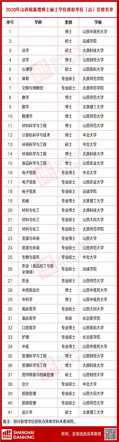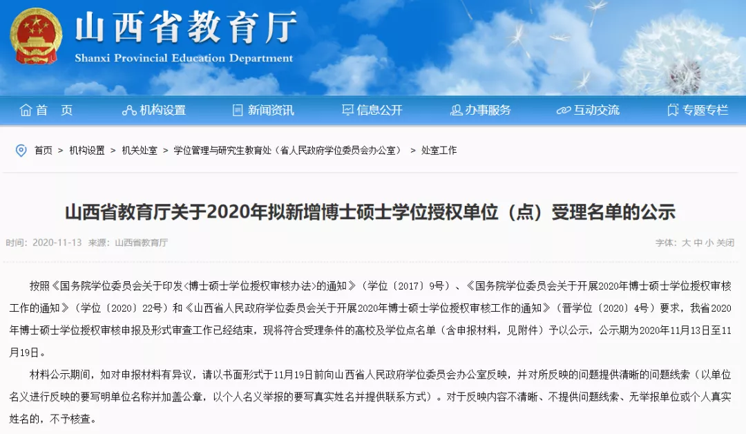 近日,四川、山西、山东、重庆、贵州、青海等多省教育厅陆续公示了2020年拟新增博士硕士学位授权点受理或审核通过的名单。本文对公示的名单进行汇总整理,以作参考。(注:公示名单尚未获教育部审批,最终名单以教育部公示为准)