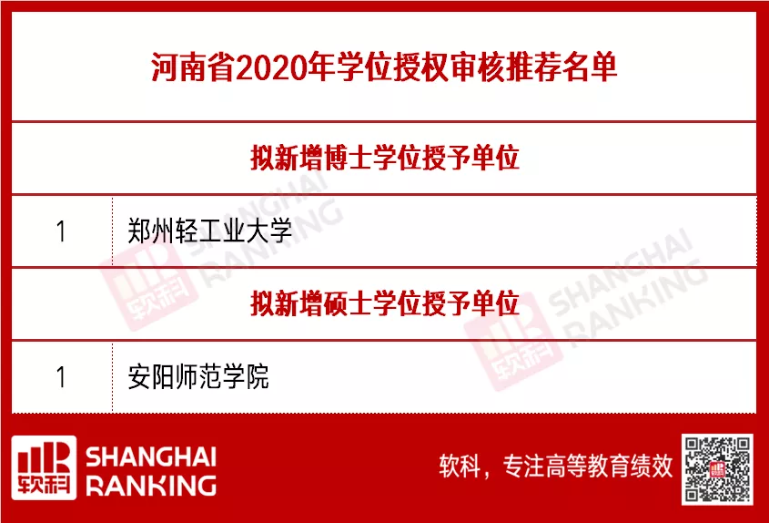 近日,又有多个省份的教育厅公示了2020年新增博士硕士学位授权点推荐名单,即已获省级教育部门审核通过的硕博点名单。此前,软科(ID: zuihaodaxue)已整理了四川、陕西、黑龙江、吉林、辽宁、上海、福建、重庆、山西、青海、甘肃等地的推荐名单,本文又收集整理了河南、湖南、江苏、江西、广东、广西、海南、内蒙古、宁夏、云南、贵州、西藏等地近两天刚刚公示的2020拟新增学位点推荐名单,以作参考。