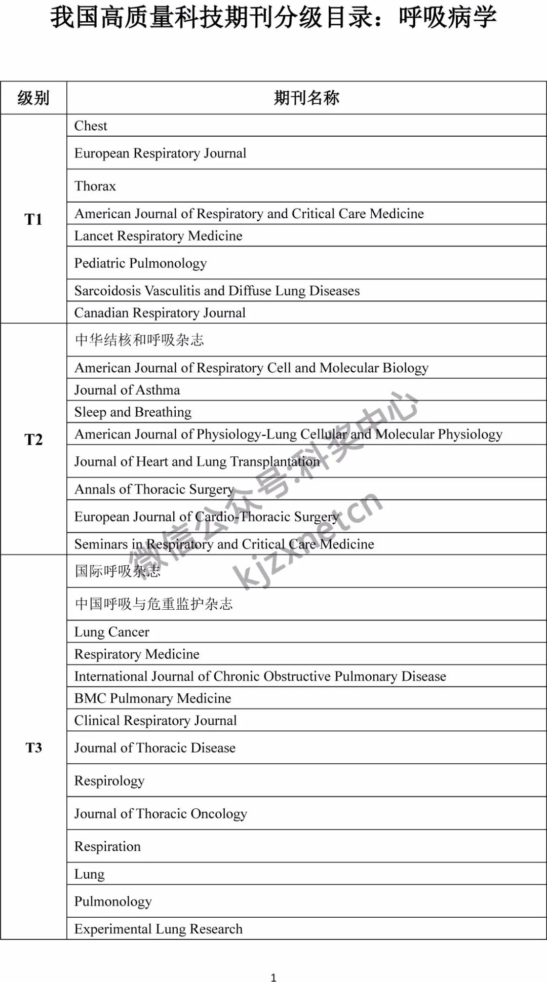 01 临床医学领域高质量科技期刊分级目录(547种)