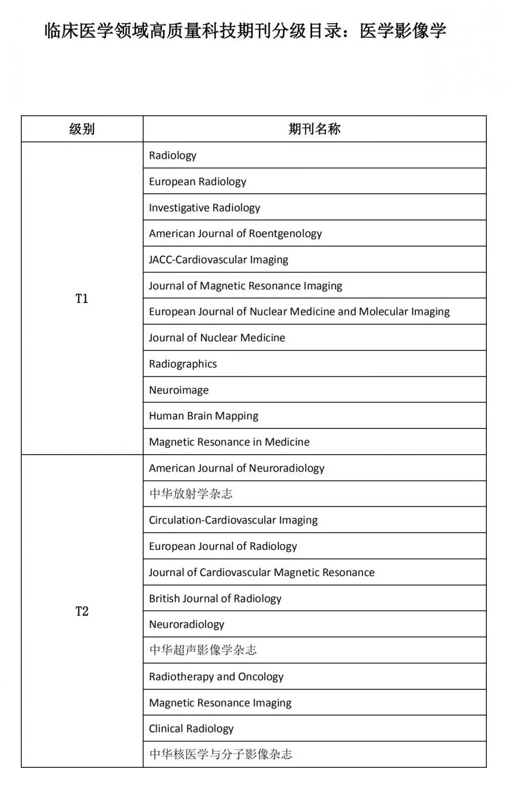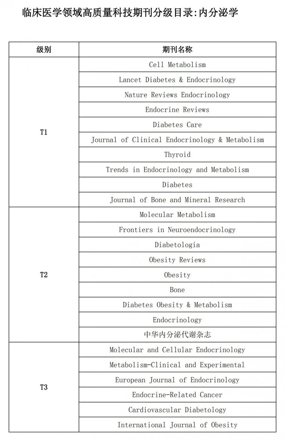 每个学科领域的期刊分为T1级、T2级和T3级三个级别:T1类表示已经接近或具备国际一流期刊,T2类是指国际知名期刊,T3类指业内认可的较高水平期刊。
