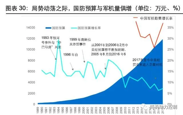 我们认为,军强才能国富,在国际局势日趋复杂的情况下,中国将加大国防 现代化水平的提升。“多年的技术积淀”为中国进入军工现代化加速阶段提 供了“技术层面基础”,“国 民经济多年良 好发展 ”为 之提供 了“ 经 济 层 面 基 础”,目前中国处于军工现代化的加 速阶段 。
