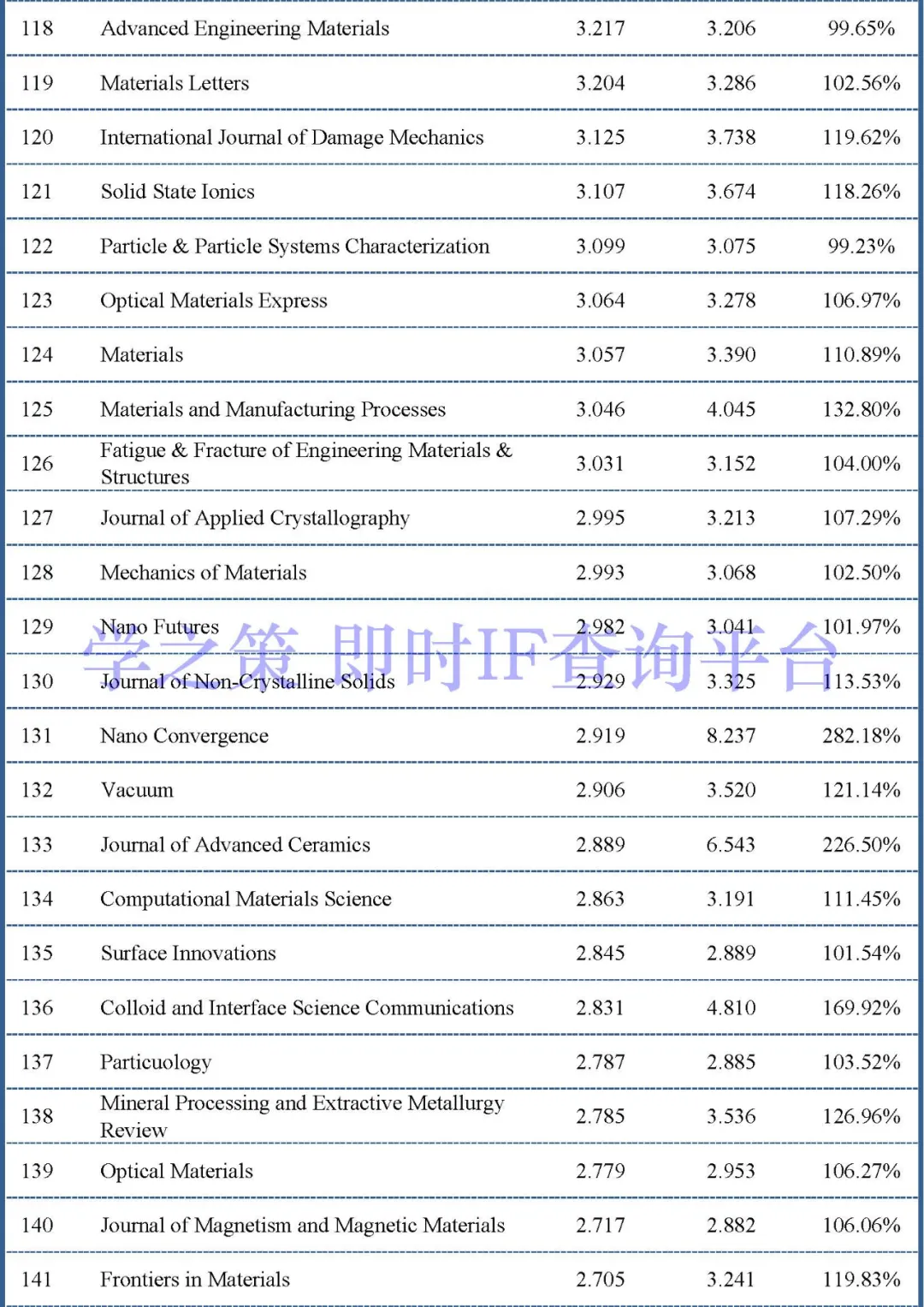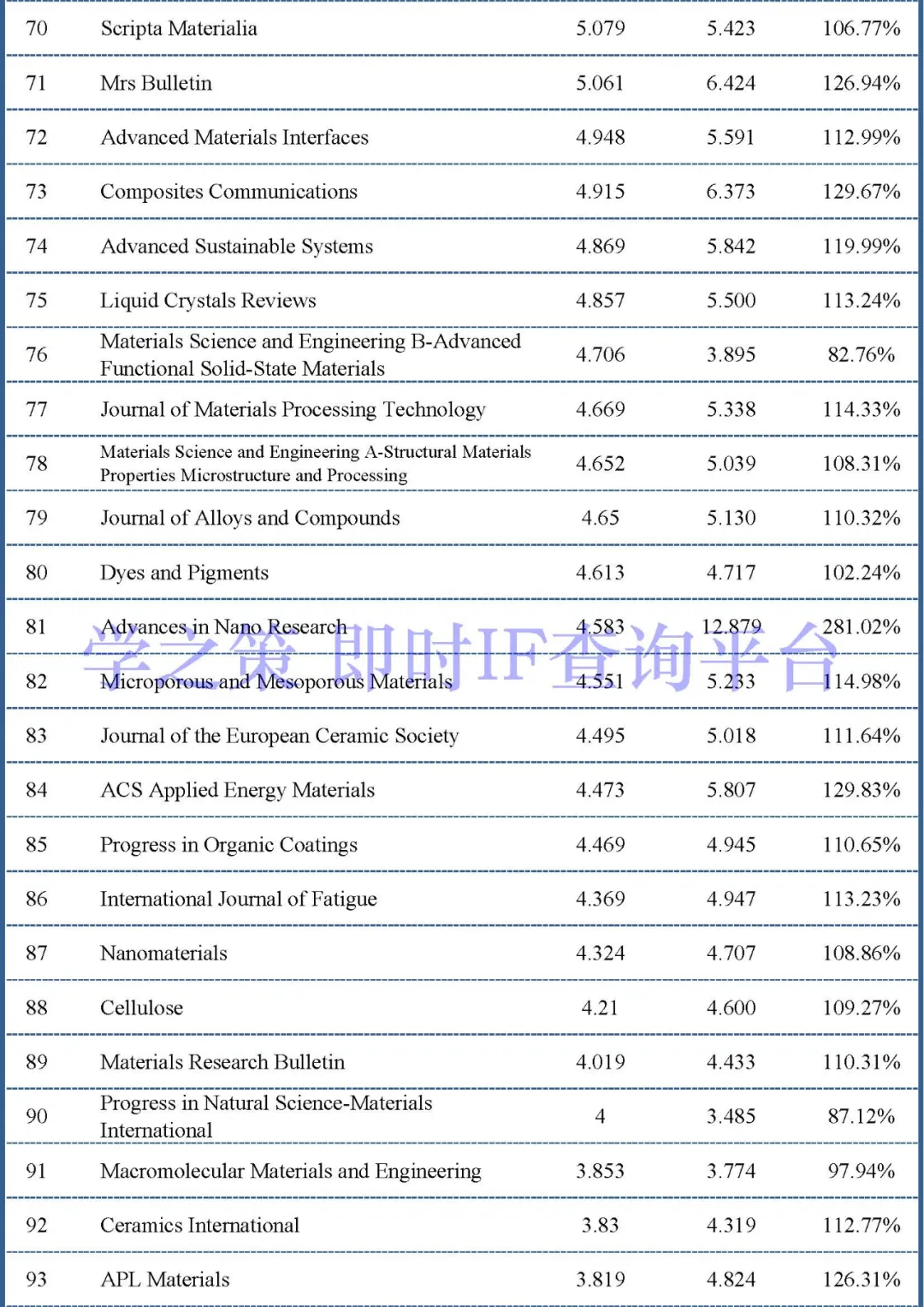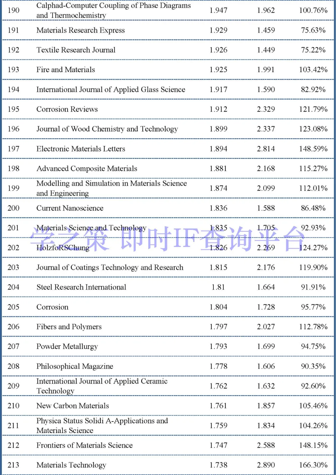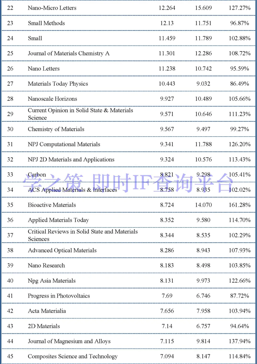 下面是材料类其它重点期刊的情况: