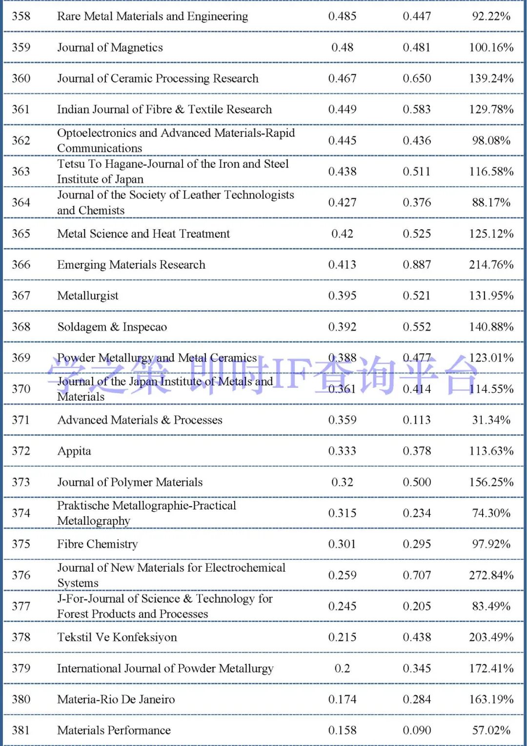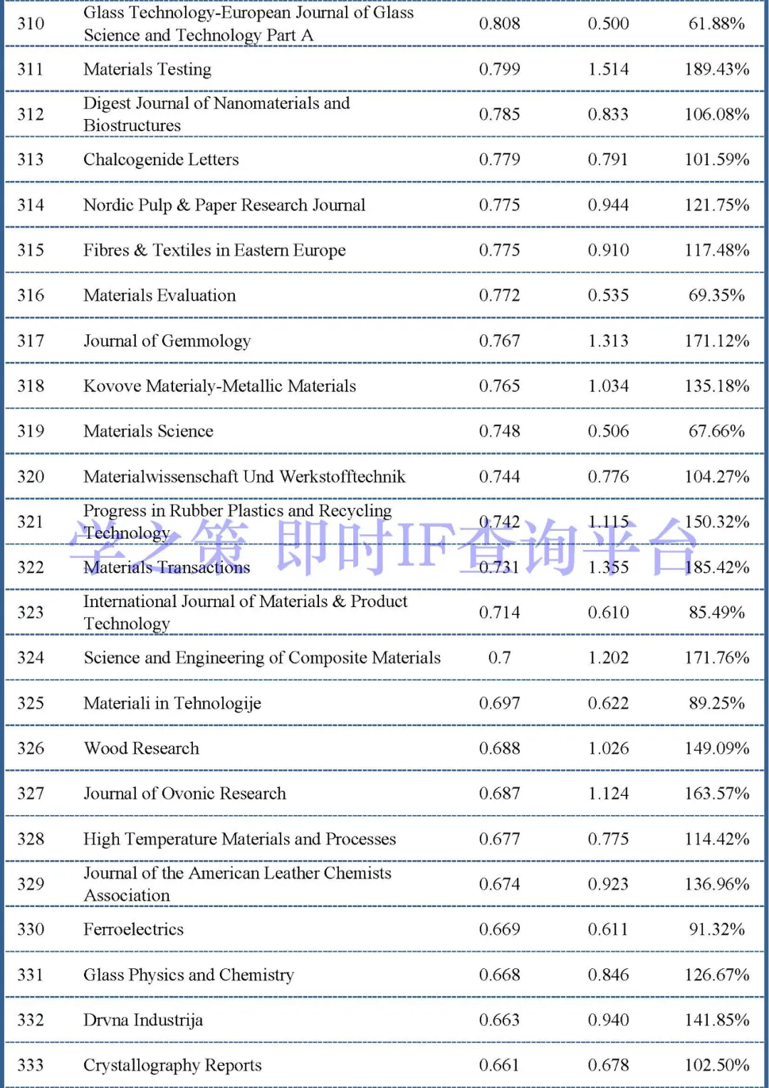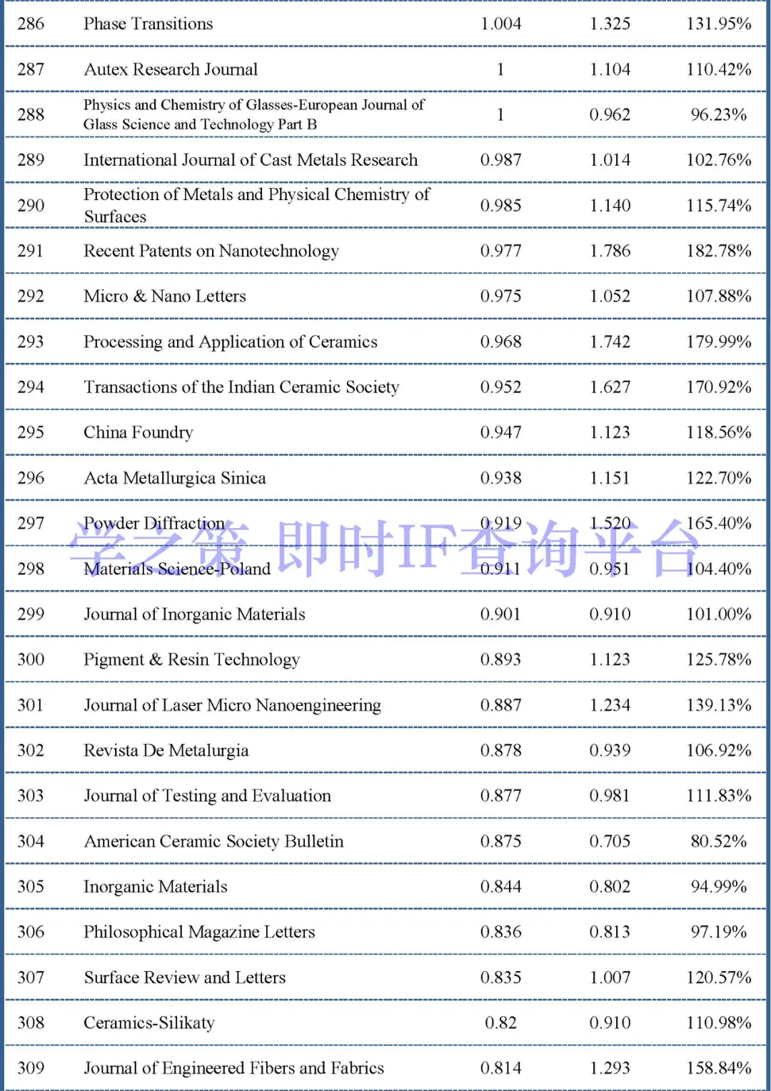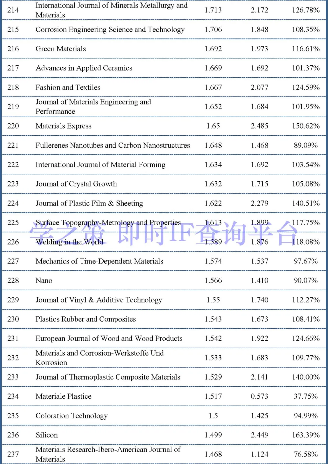 下面是材料类其它重点期刊的情况:
