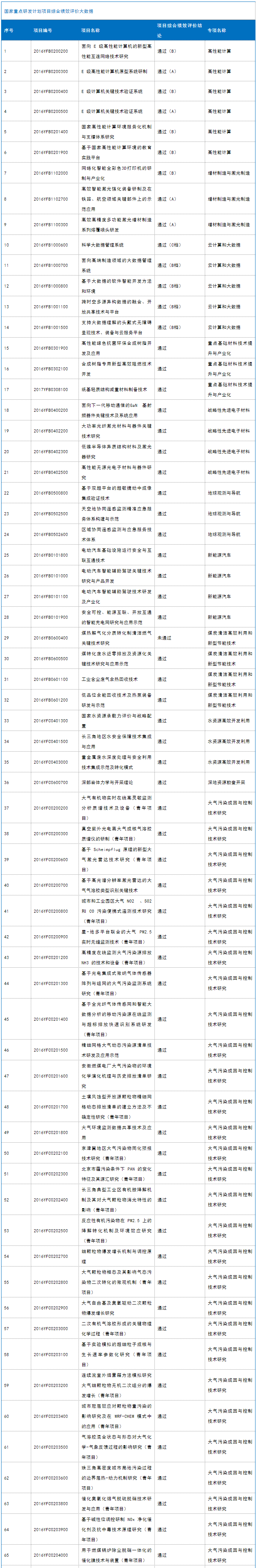 今日科技部公布47个重点专项评价结果,2项未通过。具体如下: