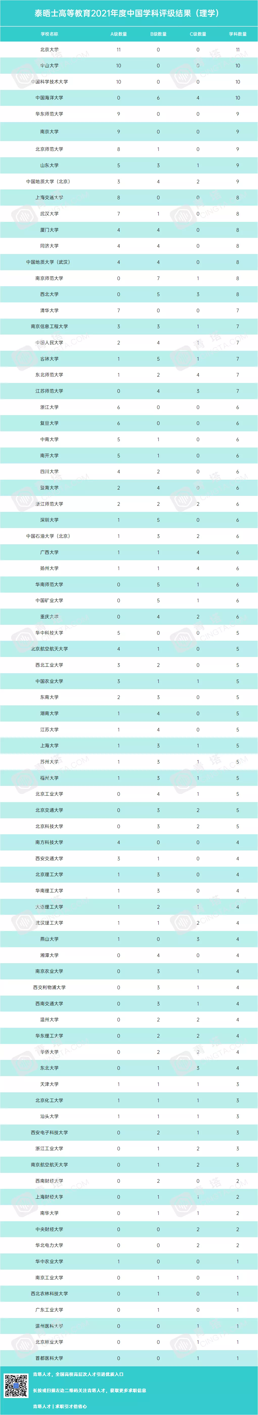 2021年5月11日下午2点,泰晤士高等教育发布了2021年度中国学科评级结果。