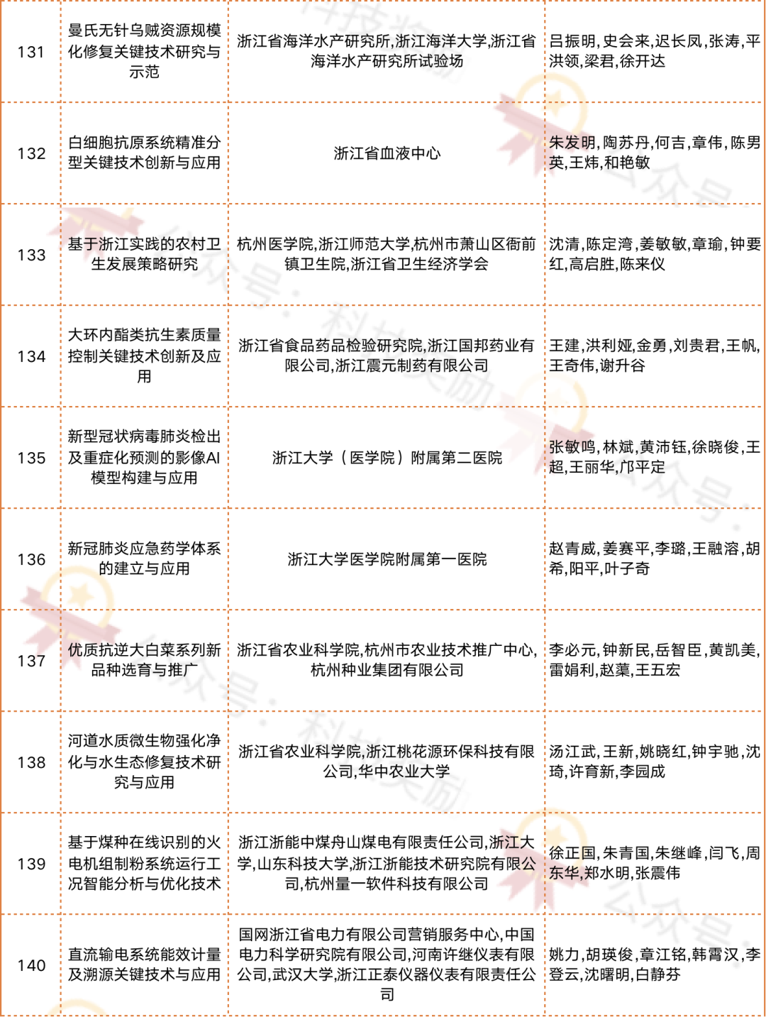 会上,颁发301项2020年度浙江省科学技术奖,其中浙江科技大奖1项,由潘云鹤院士获得;299项成果(项目)获省自然科学奖、技术发明奖和科学技术进步奖,其中一等奖44项、二等奖90项、三等奖165项;国际科学技术合作奖1项,由英国诺丁汉大学获得。