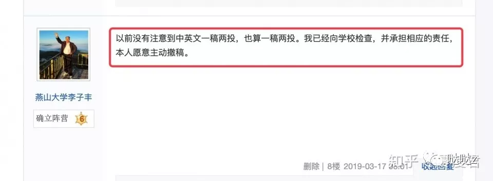 零度君其实对李子丰一稿多投这件事并不太生气,生气的是他搬弄是非、拒不认错甚至在课堂上公开兜售这些违反学术诚信的东西。为师者,一言一行都应慎重,如此为师,吾等不齿。