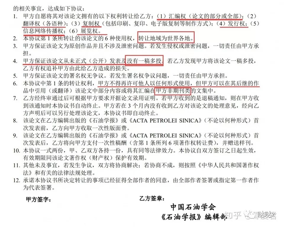 还有李子丰经常发的石油学报,人家的版权转让协议是这样的: